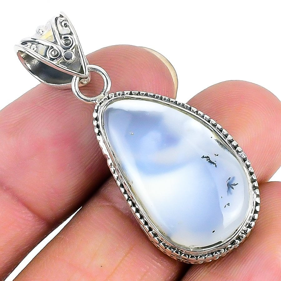 Natural Dendrite Opal Wife Elegant Trendy Unique Wedding Pendant Sterling Silver