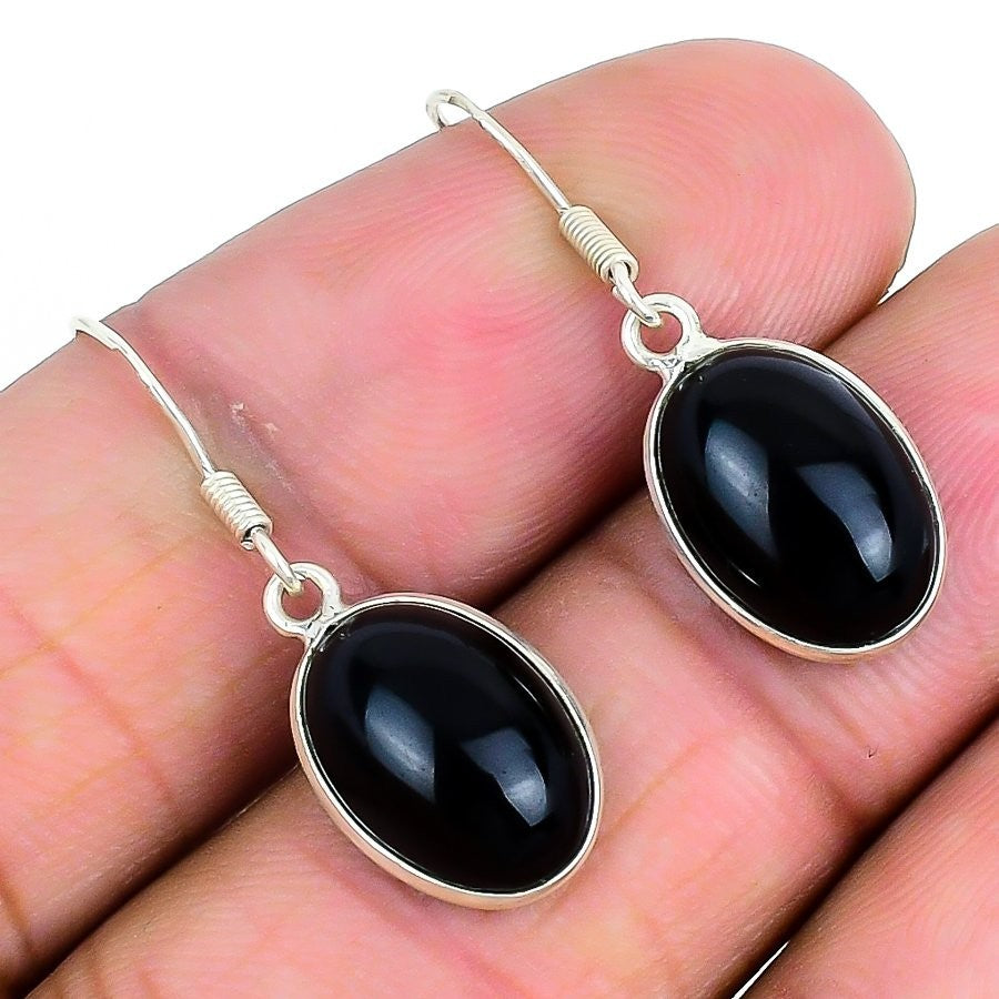 Black Onyx Stone Dangle Channel Set Wedding Earrings Jewelry 925 Sterling Silver