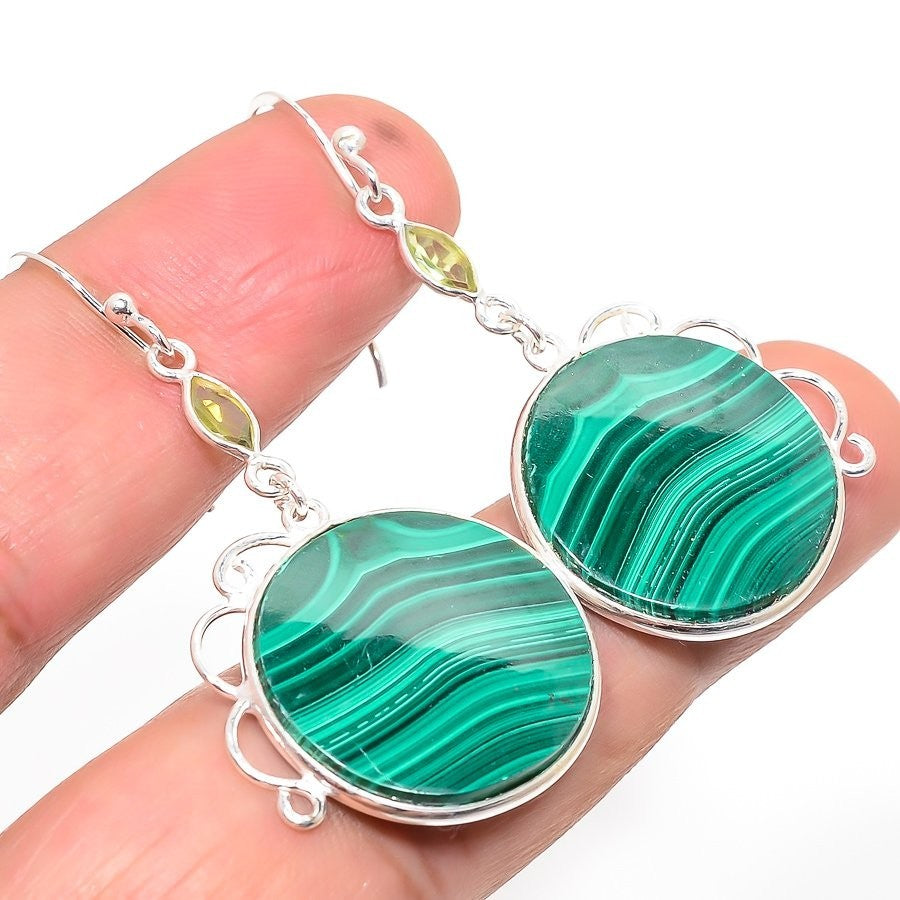 Heart Chakra Natural Malachite 925Ā SolidĀ Silver Elegant New Dangle Drop Earrings