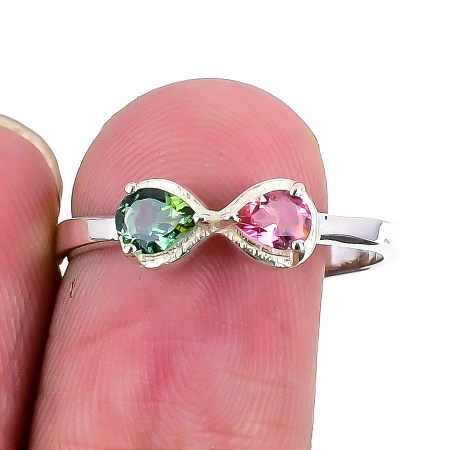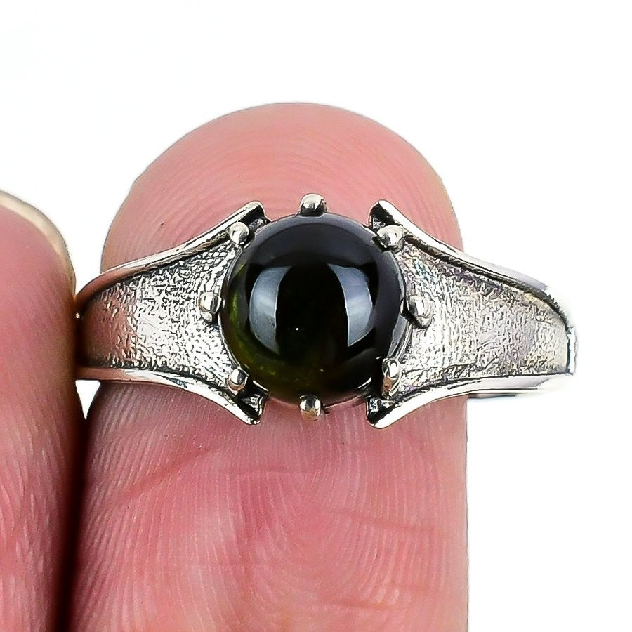 Natural Tourmaline Sterling Silver Bezel Statement Daughters Day Wife Ring US 10
