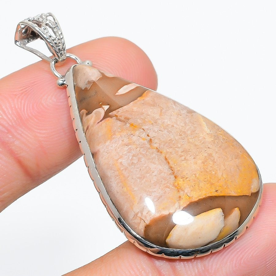 Peanut Wood Jasper Gemstone 925 Silver Handcrafted Anniversary Pendant Jewelry