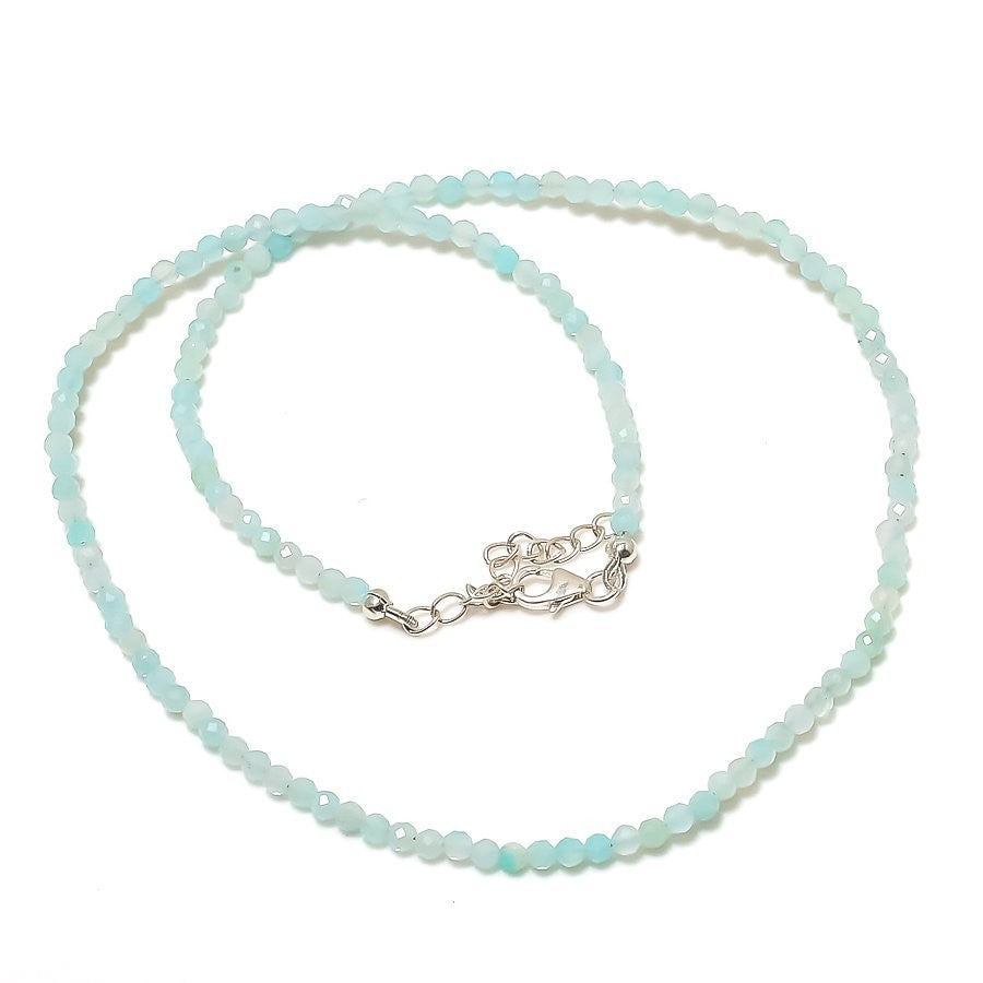 Throat Chakra Natural Aquamarine Faceted Chain Necklace Jewelry Sterling Silver