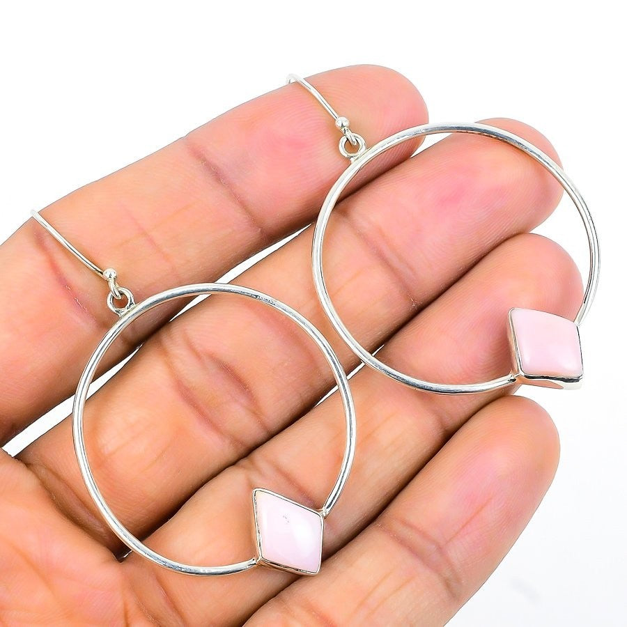 Pink Opal Stone Art Deco Drop Dangle Daughter Gift Birthday Earrings 925 Silver