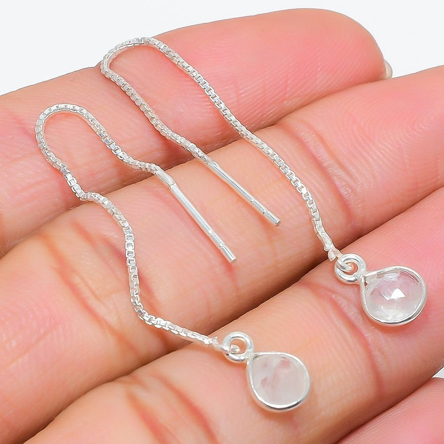 Natural Rainbow Moonstone Solid Silver Birthday Hook Drop Wife Earrings Jewelry