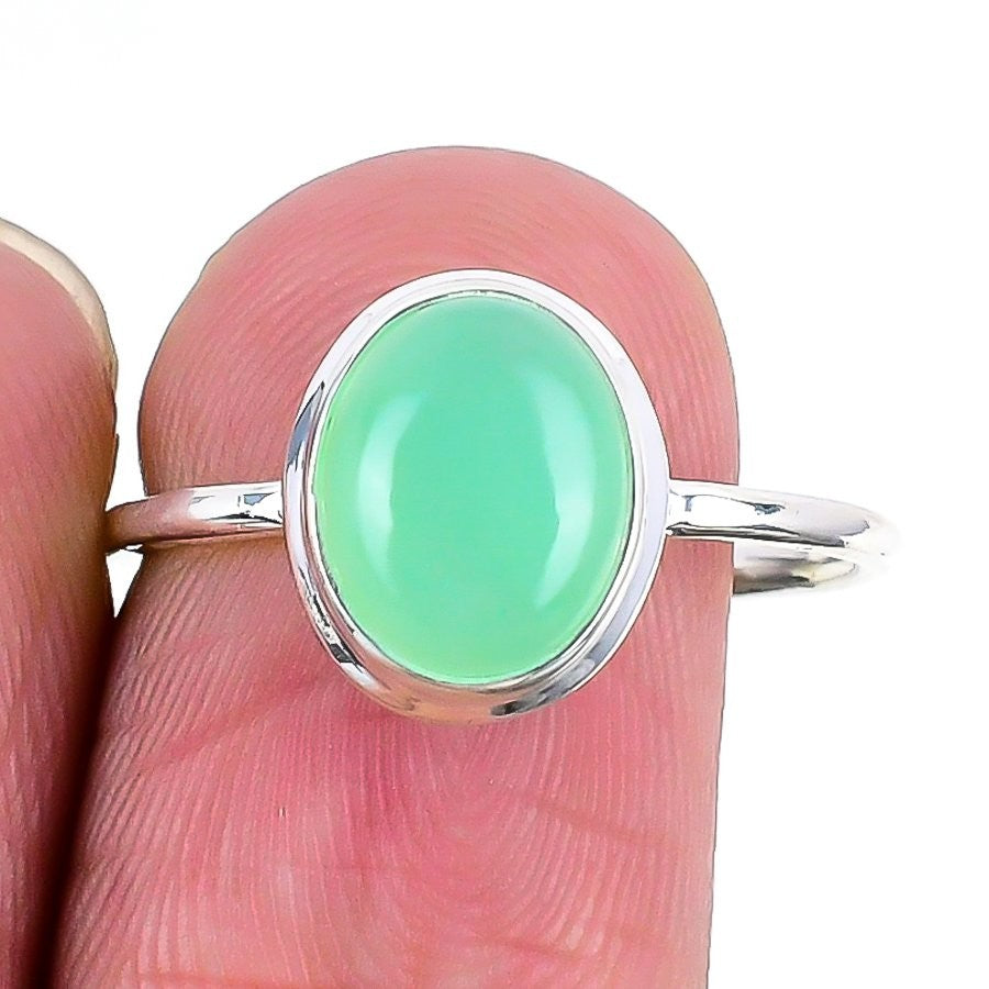 Chrysophrase Gemstone Sterling Silver Daughter Handcrafted Statement Ring US 9
