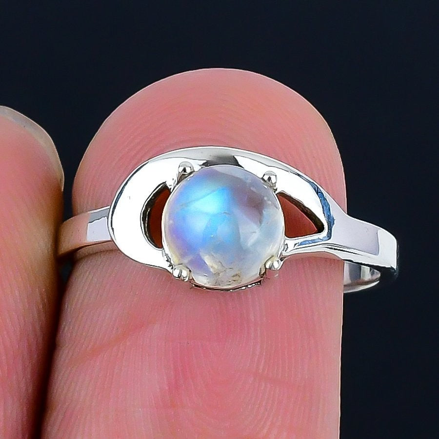 June Birth Moonstone Gemstone Sterling Silver Statement Boho Trendy Ring US 7.5