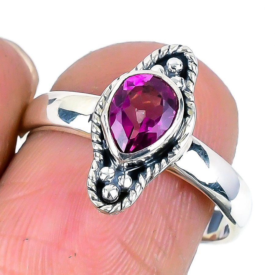 Natural Pink Topaz 925 Silver Wife Wedding Statement Engagement Ring Size 7.5