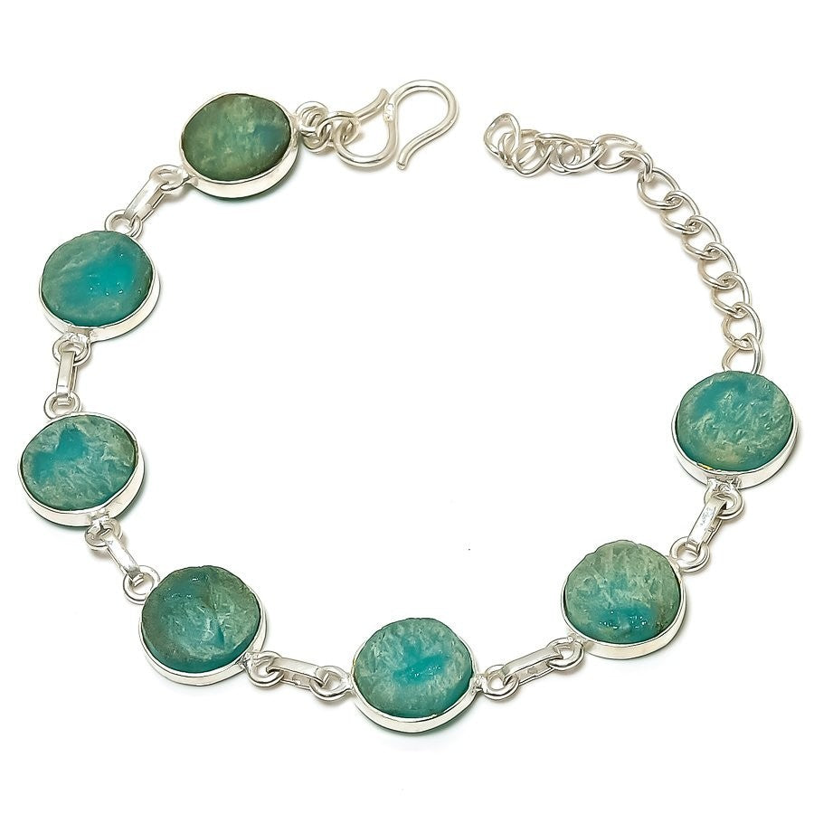 Variscite Gemstone Handcrafted Chain Wife Bracelet Jewelry Solid Sterling Silver