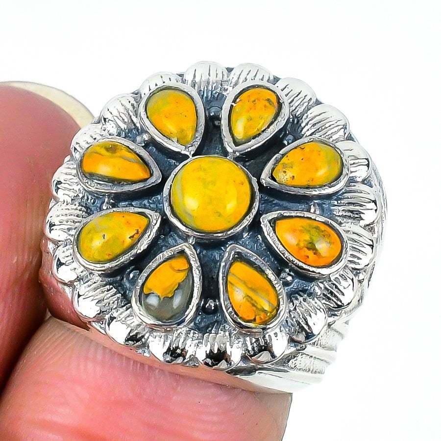 Natural Bumble Bee Jasper Sterling Silver Statement Daughter Ring Jewelry US 5