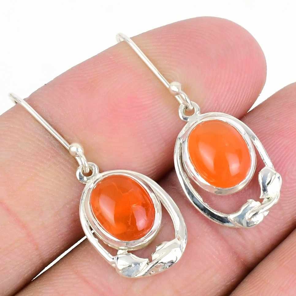 Natural Carnellian 925Ā SolidĀ Silver Trendy Daughter Dangle Hook Wedding Earrings