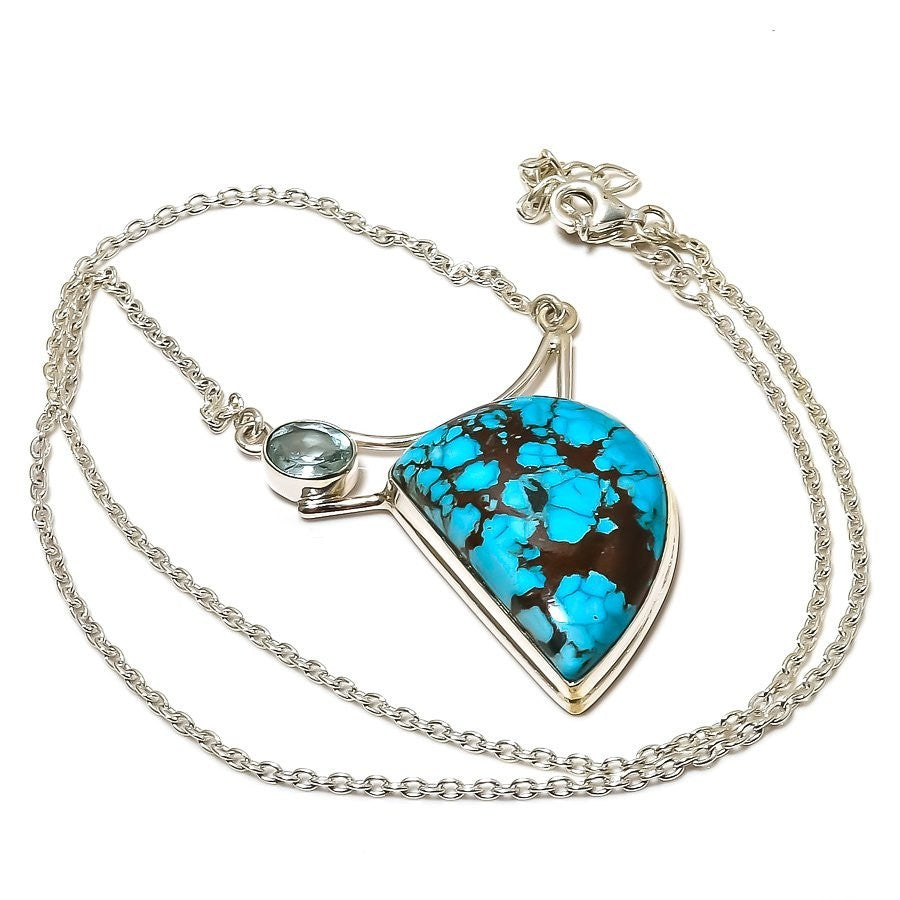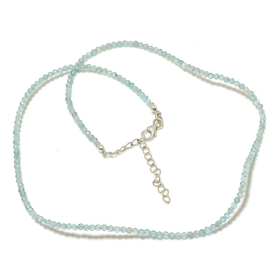 Aquamarine Faceted Gemstone Sterling Silver Engagement Chain Ethnic New Necklace
