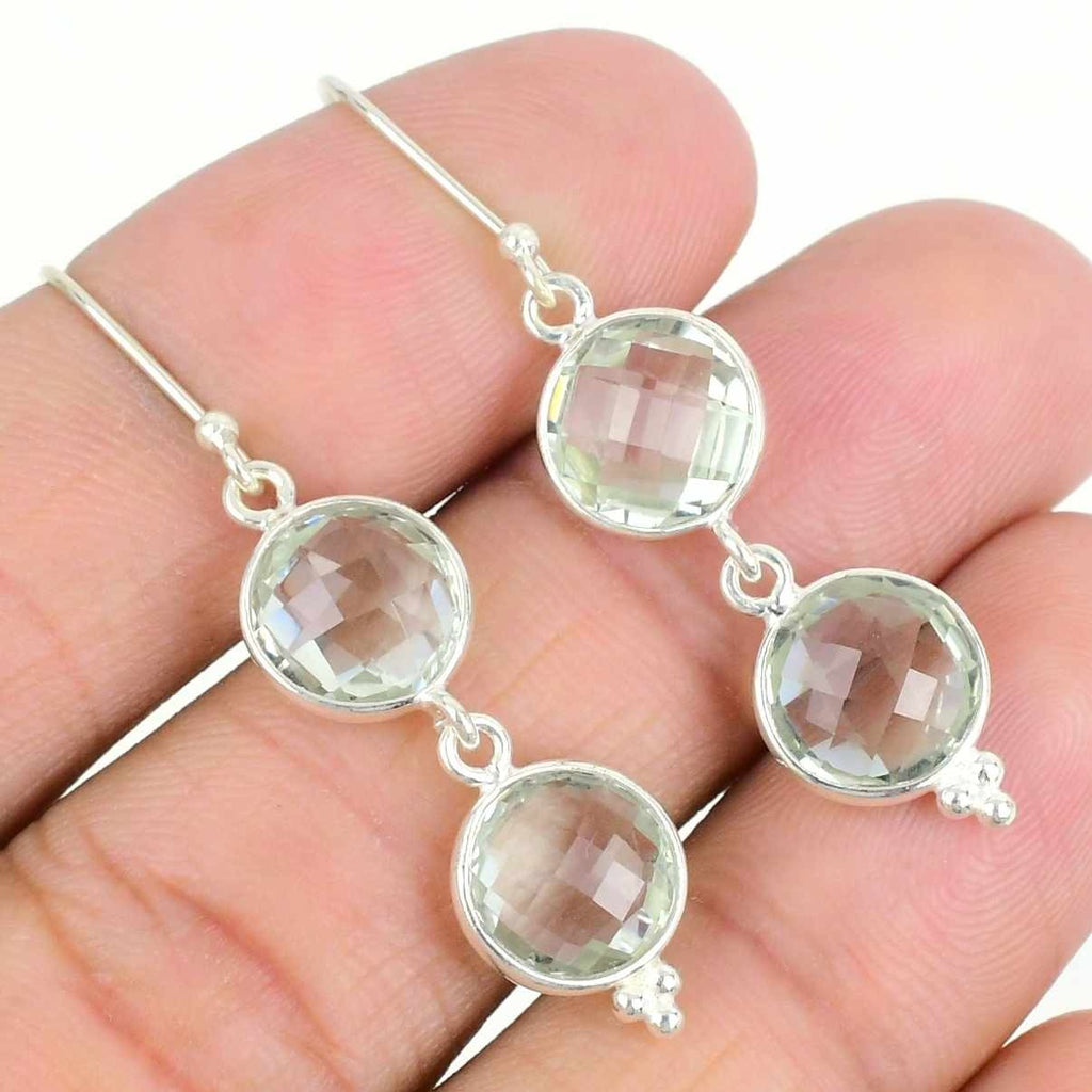 green Amethyst Gemstone Artisan Dangling Earrings Jewelry 925 Sterling Silver