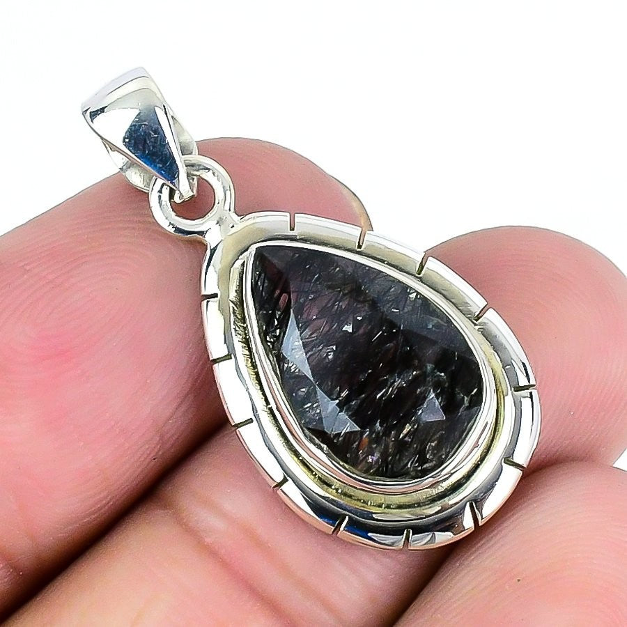 Natural Black Rutile Daughters Day Wedding Wife Pendant Jewelry Sterling Silver