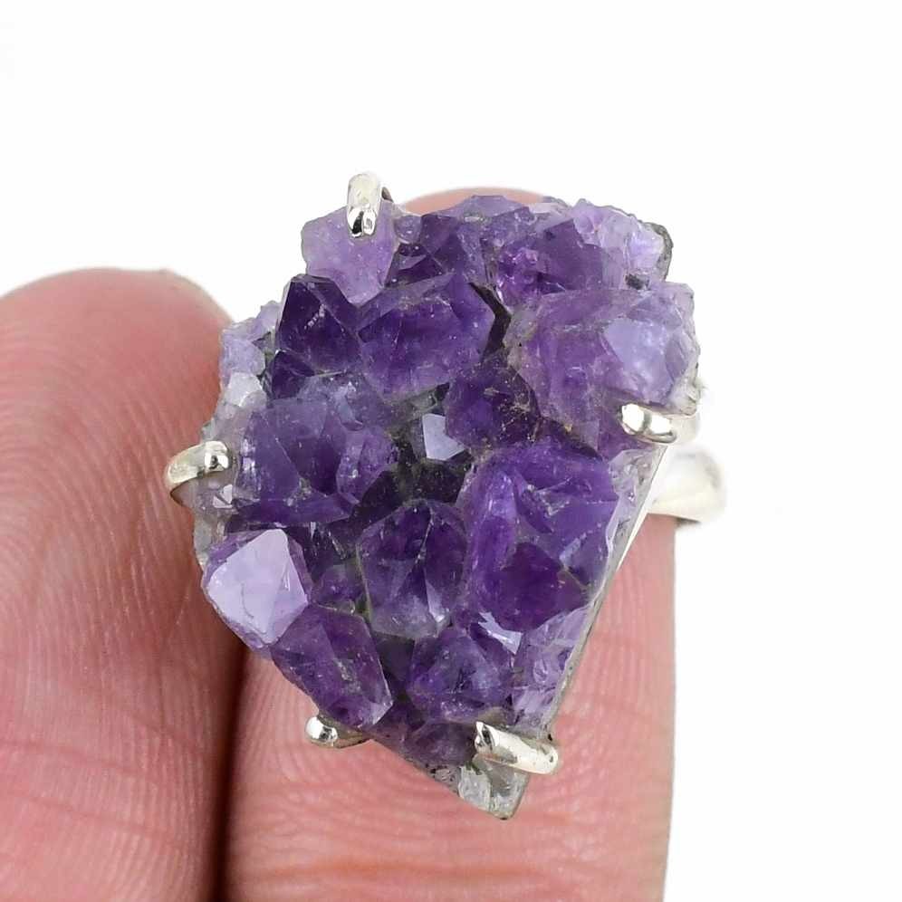 Natural Amethyst Druzy 925Ā SolidĀ Silver Cluster Wedding Anniversary Ring Size 7