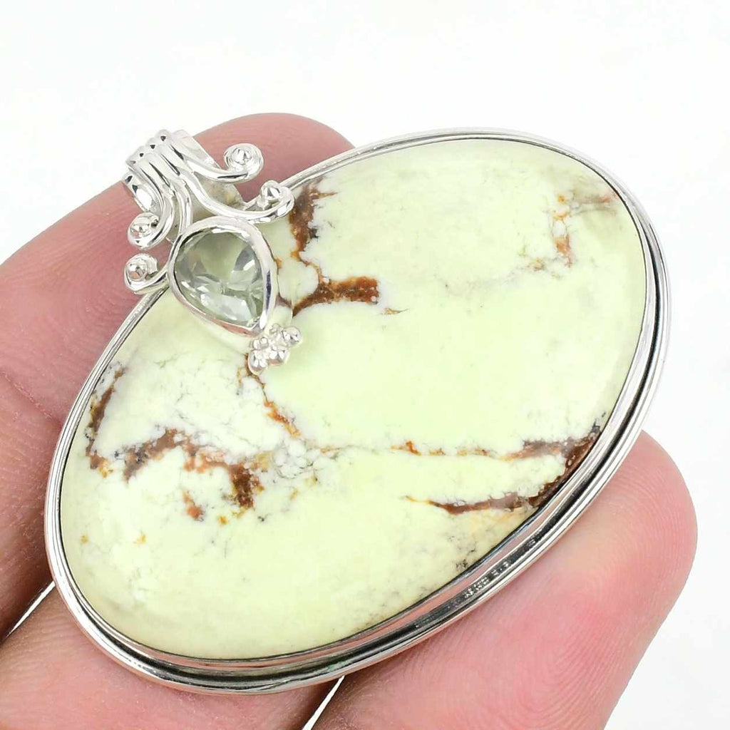 Lemon Chrysophrase Stone 925Ā SolidĀ Silver Engagement Handcrafted Pendant Jewelry