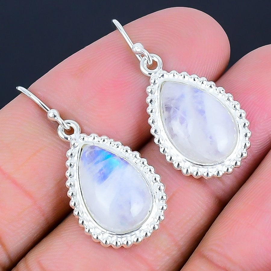Rainbow Moonstone Stone Mother Unique Dangling Artisan Earrings 925Ā SolidĀ Silver