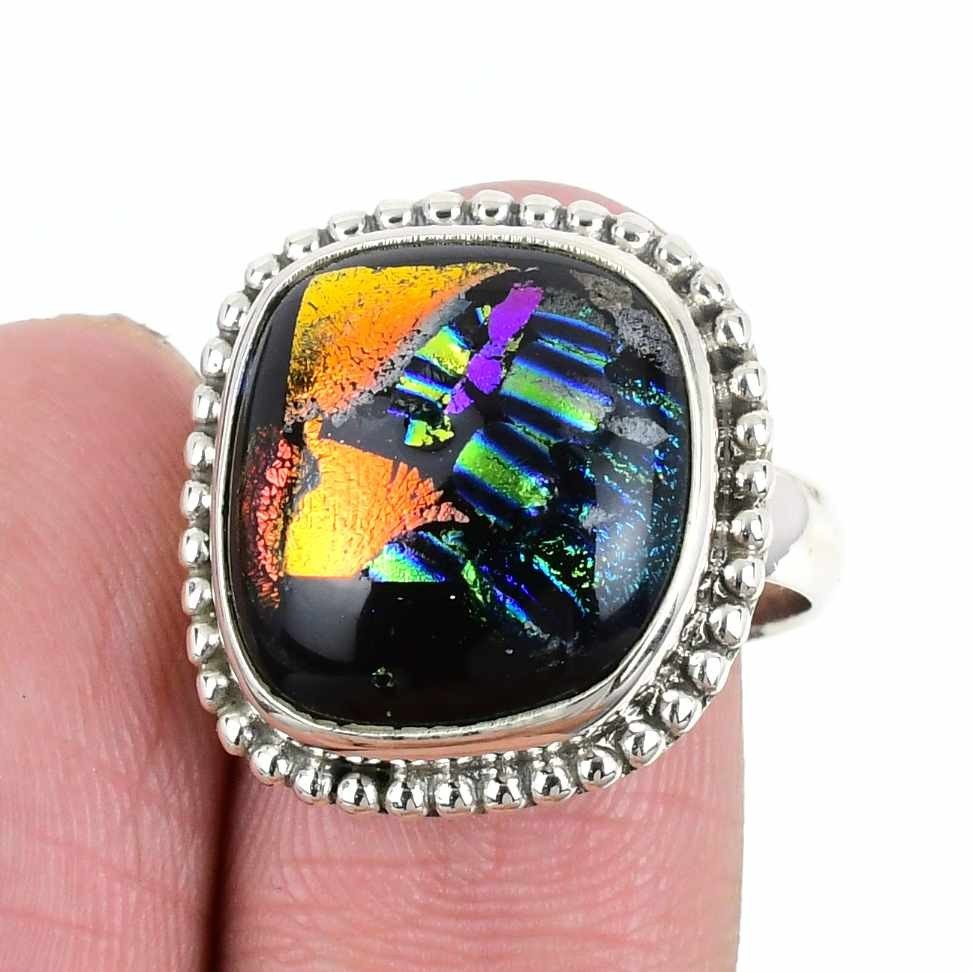 Mexican Dichoric Glass Stone Cluster Daughters Day Boho Ring Size 8.5 925 Silver