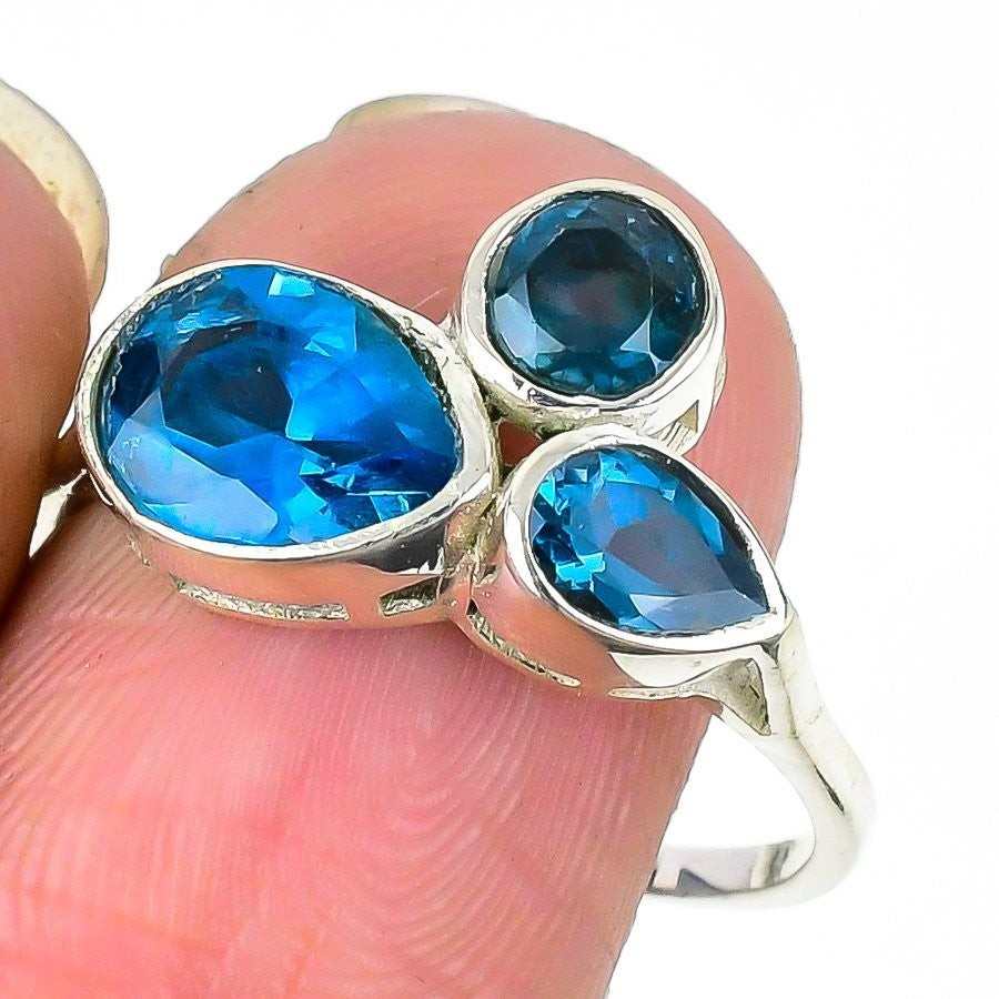 Swiss Blue topaz Stone Solid Sterling Silver Wedding Cluster Ring Jewelry Size 6