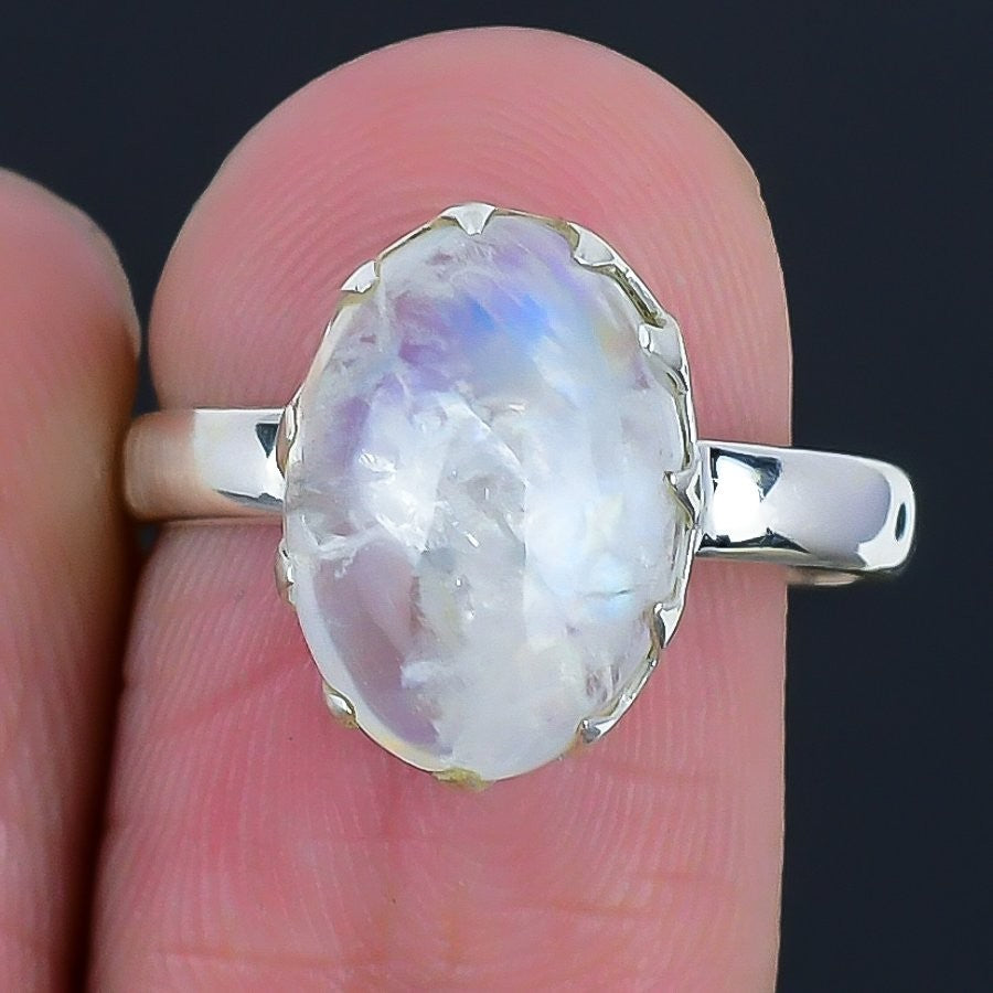 rainbow Rainbow Moonstone Stone 925 Sterling Silver Cluster Ring Jewelry Size 8