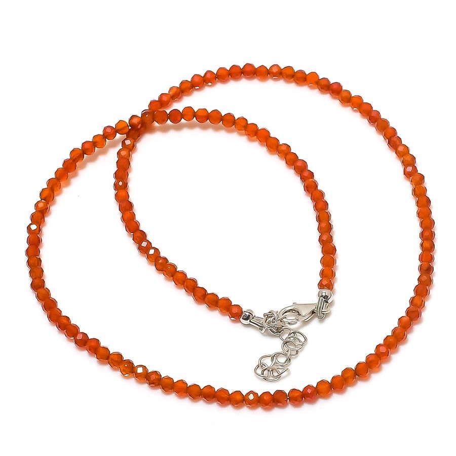 Natural Carnelian Faceted Chain Sacral Chakra Wedding Necklace 925Ā SolidĀ Silver