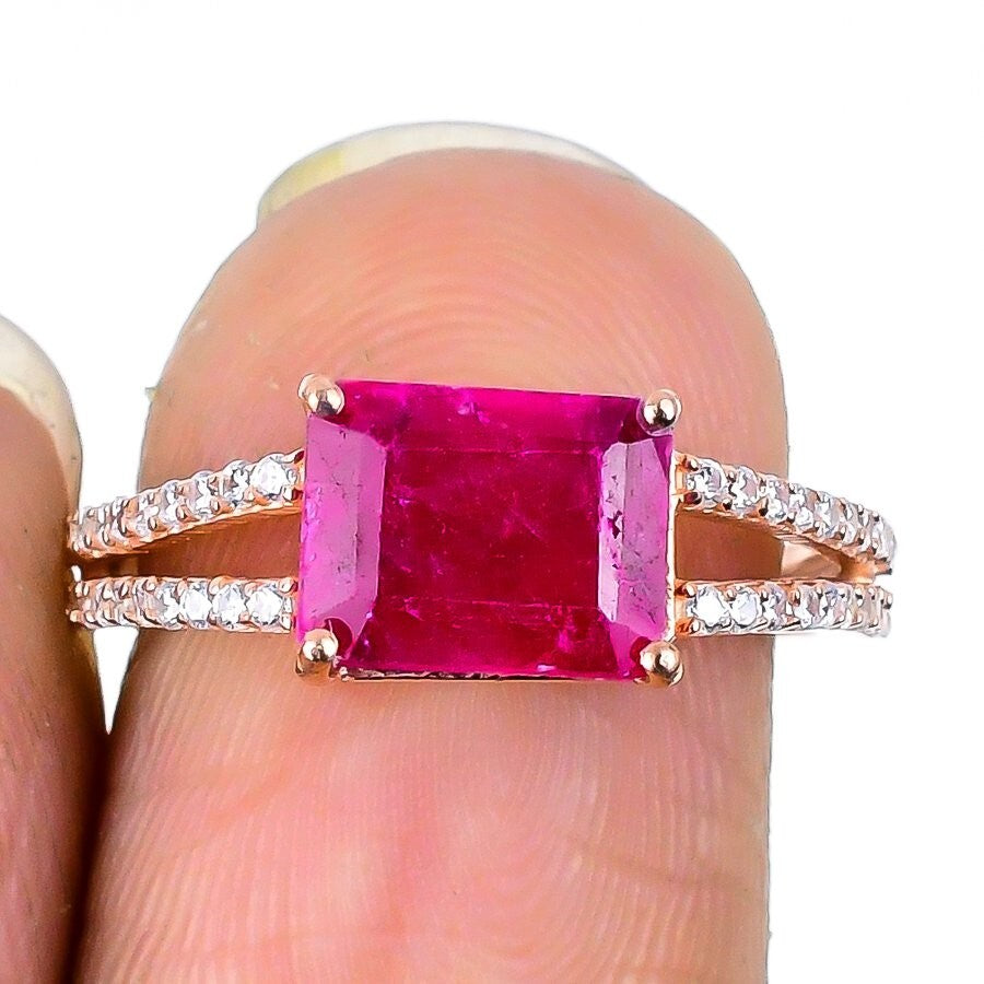 Mothers day Deal Natural Ruby 925 Silver Rose Gold Vermeil Statement Ring Size 7