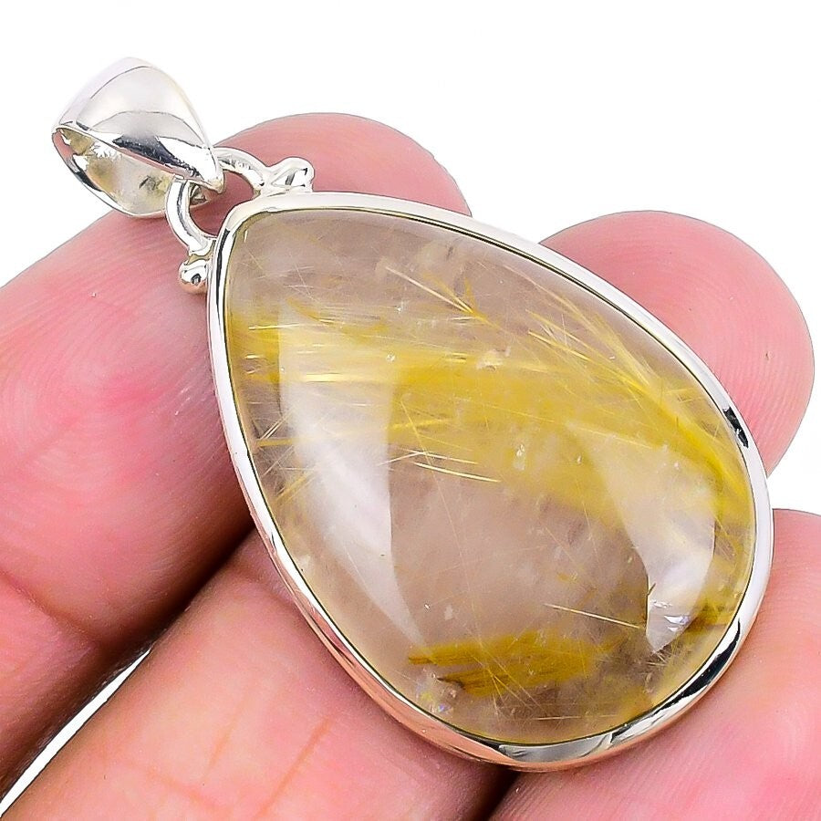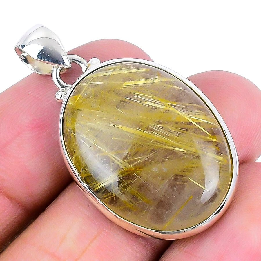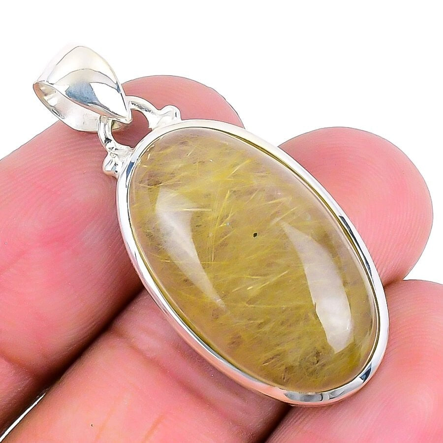 Golden Rutile Gemstone Trendy Mothers Gift Wife Pendant Jewelry Sterling Silver