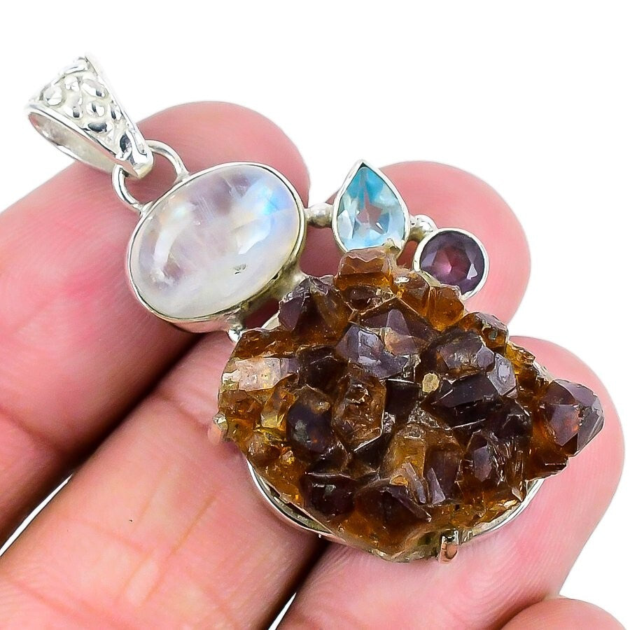 Golden Rutile Gemstone Mother Boho Artisan Ethnic Pendant Jewelry Solid Silver