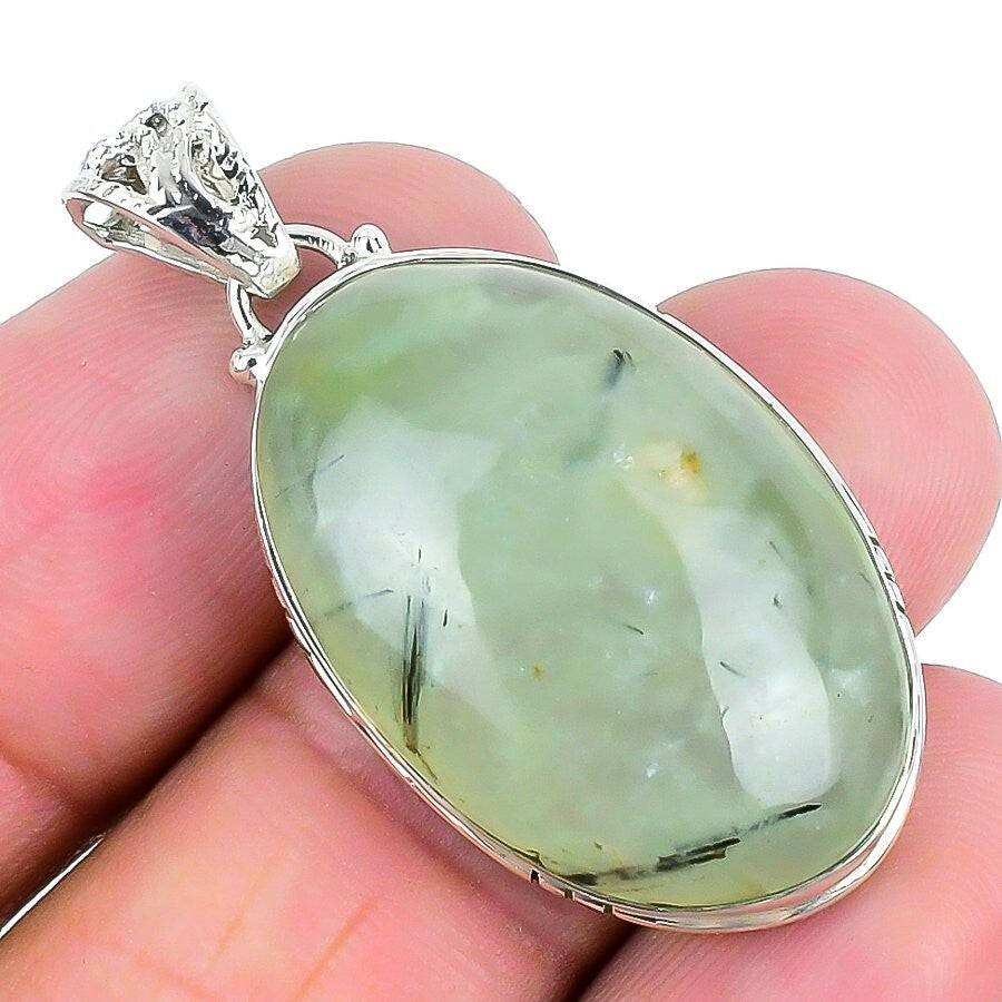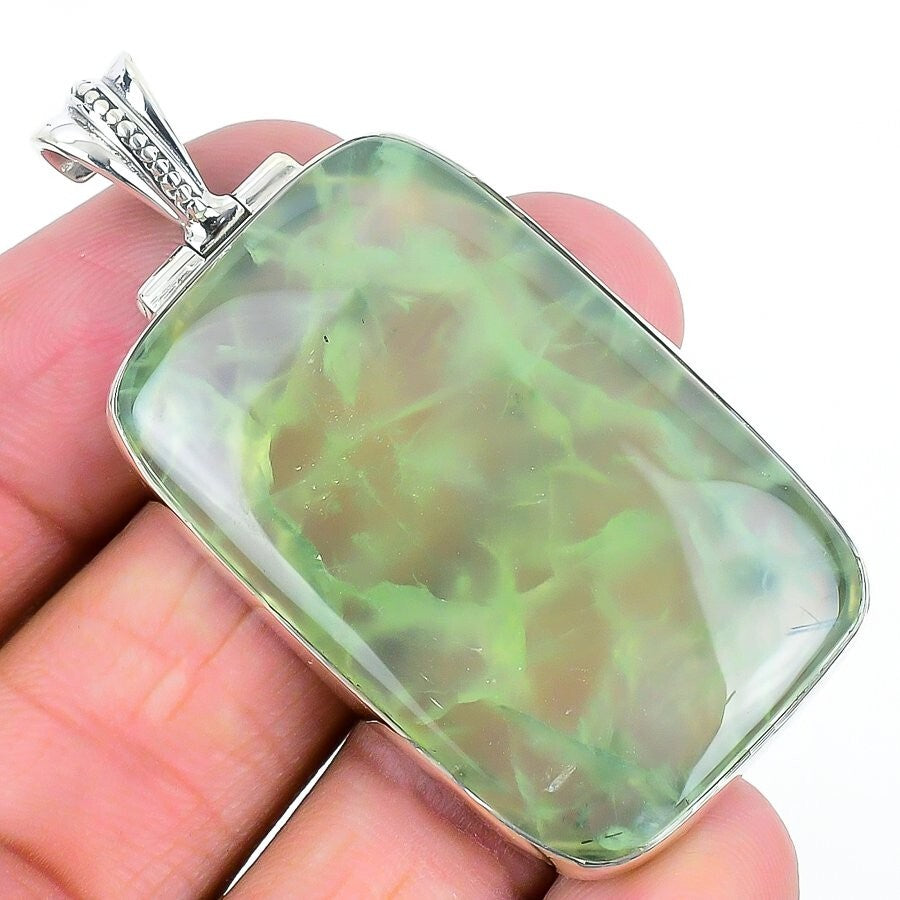 Prehnite Gemstone Mothers Gift Engagement Unique Trendy Pendant Sterling Silver