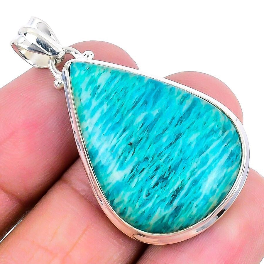 Natural Amazonite Solid Silver Heart Chakra Mothers day Birthday Pendant Jewelry