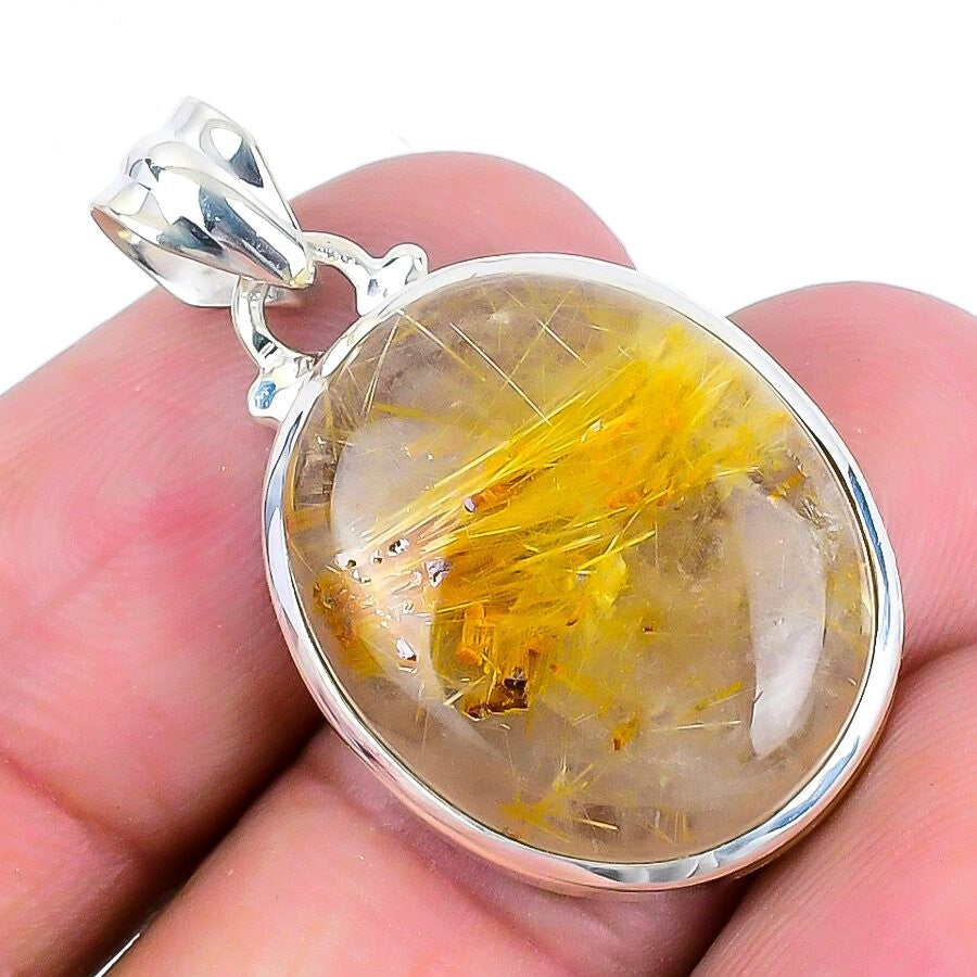 Golden Rutile Stone Solid Sterling Silver Boho Mothers day New Pendant Jewelry