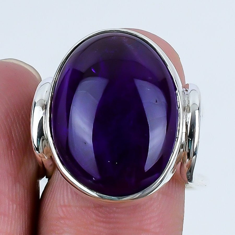 Sage Amethyst Gemstone 925Ā SolidĀ Silver Birthday Statement Ring Jewelry Size 6