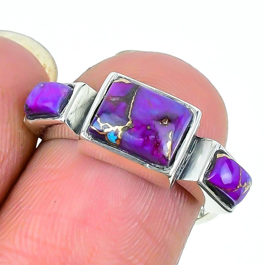 Natural Copper Purple Turquoise 925 Sterling Silver Statement Ring Jewelry US 7