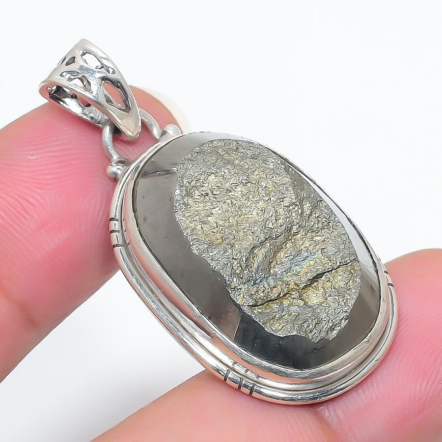 Pyrite Agate Gemstone Solid Sterling Silver Wedding Art Deco Anniversary Pendant