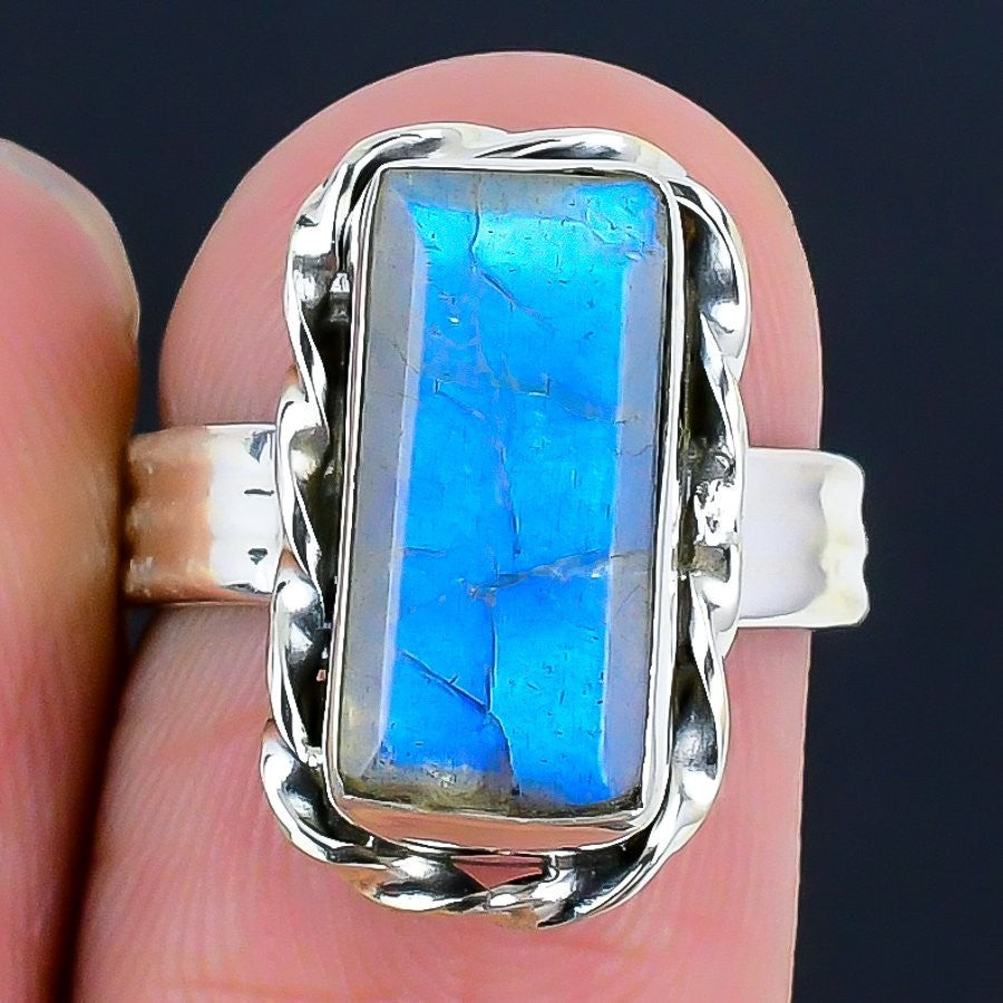 Labradorite Stone Solid Silver Artisan Statement Birthday Ring Jewelry Size 5.5