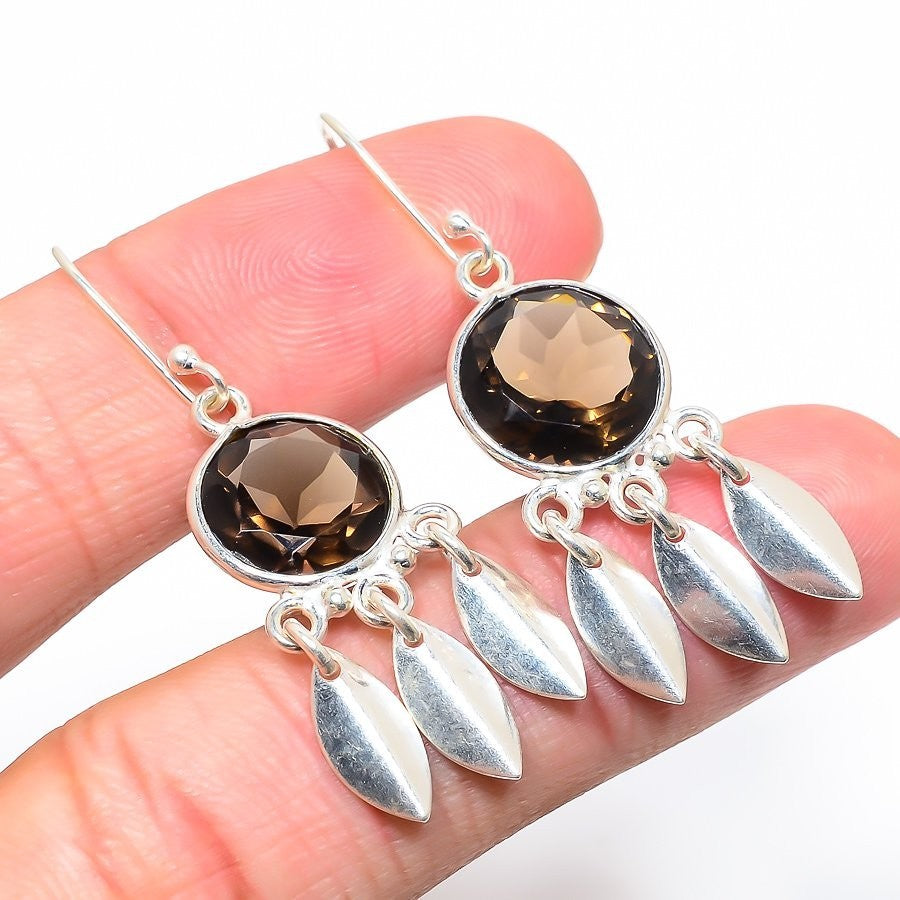 Smoky Topaz Stone 925Ā SolidĀ Silver Art Deco Dangle Drop Daughter Gift Earrings