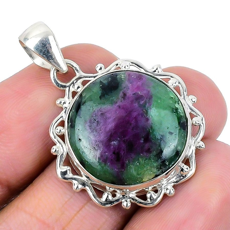Natural Ruby Zosite Solid Sterling Silver Wedding Artisan Mother Pendant Jewelry
