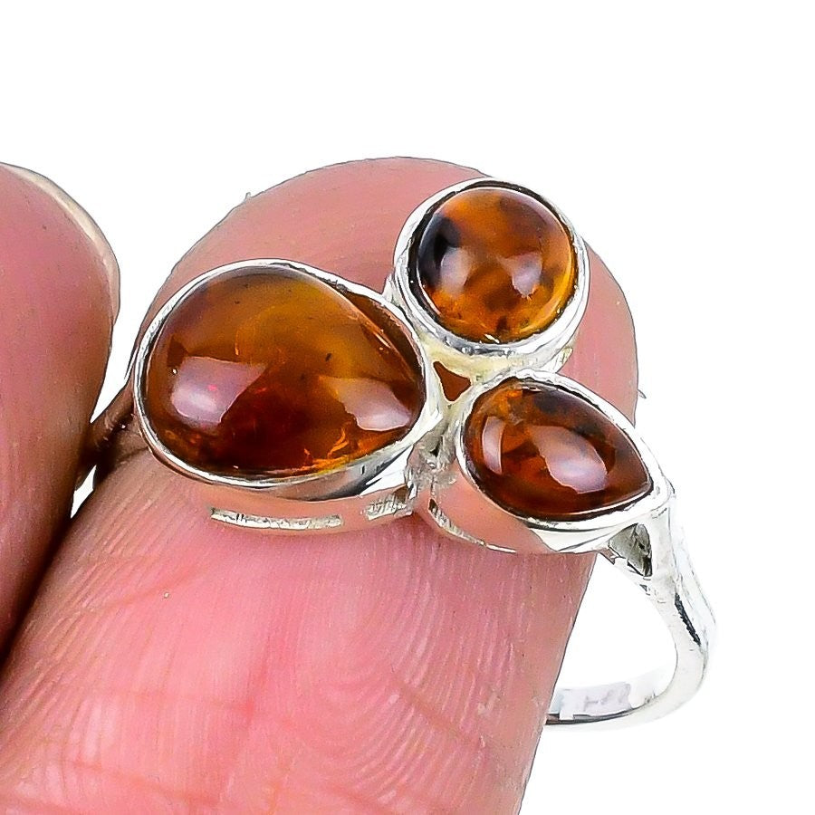 Baltic Amber Stone 925 Sterling Silver Statement Handmade Daughter Ring US 10