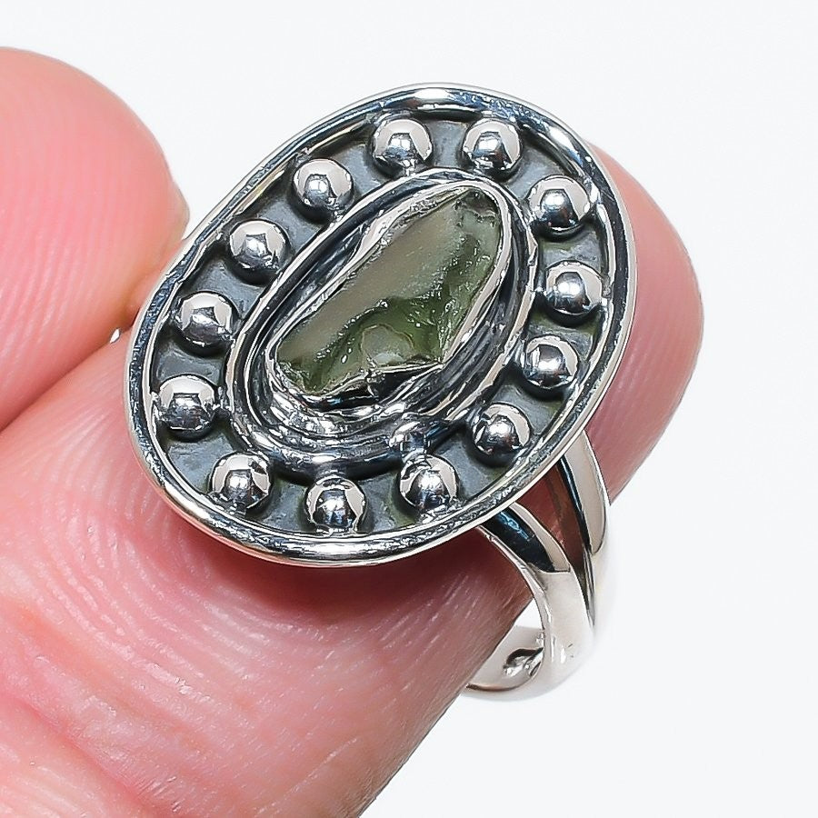 Moldavite Gemstone Statement Third Eye Chakra Ring Jewelry Size 8 Solid Silver