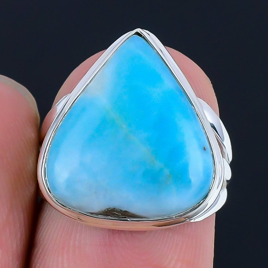 Larimar Gemstone Birthday Statement Wedding Ring Size 6 Solid Sterling Silver
