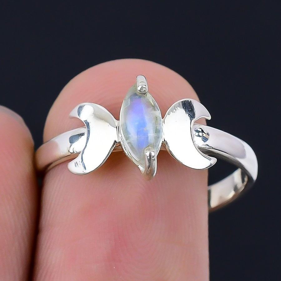 Rainbow Moonstone Gemstone Boho Statement Daughter Ring Jewelry 925Ā SolidĀ Silver