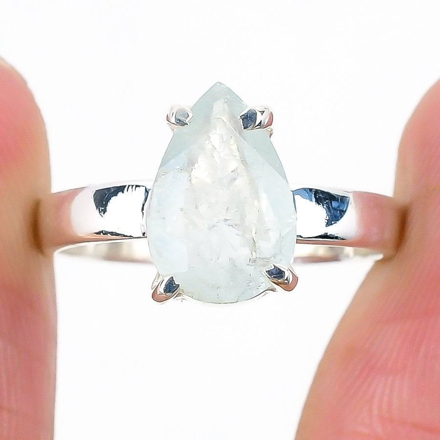 March Birth Aquamarine Gemstone Statement Engagement Ring 925 Solid Silver US 8