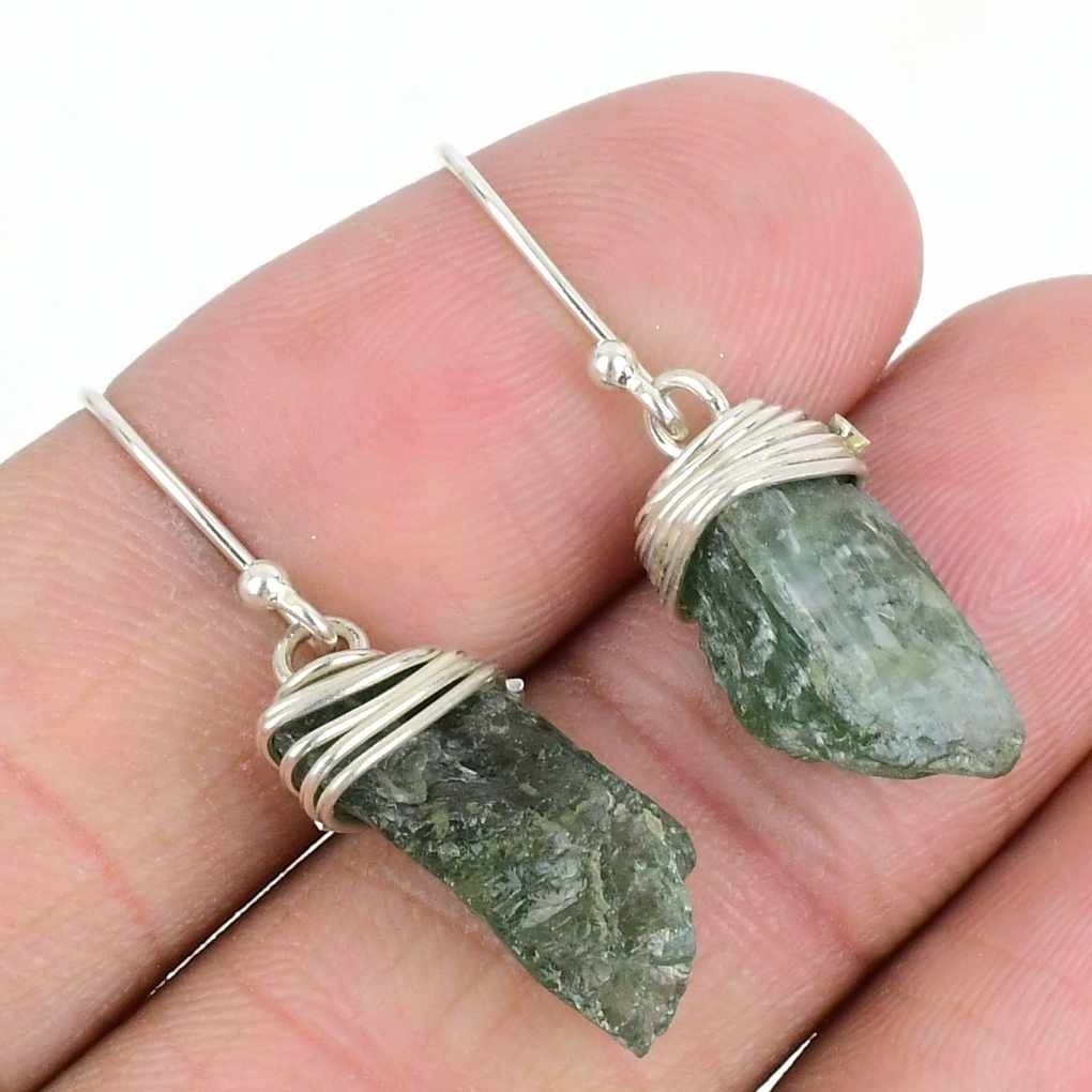 Green Tourmaline Stone 925 Solid Silver Drop Dangle Daughter Earrings Jewelry