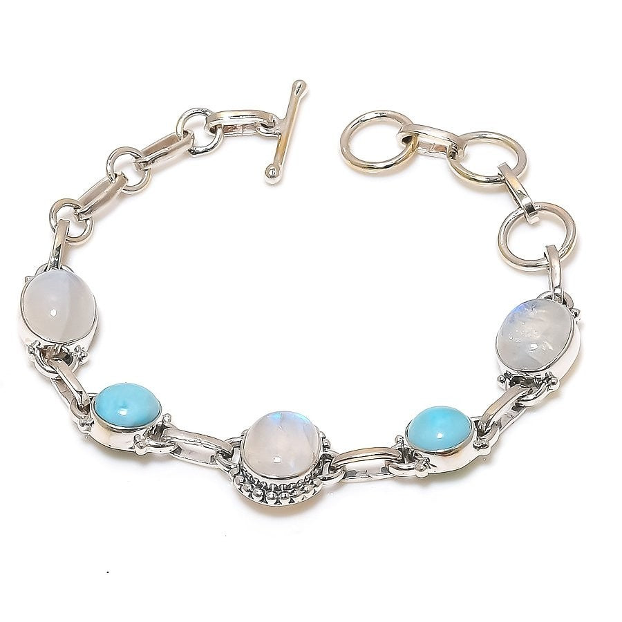 Rainbow Moonstone Stone 925 Silver Sister Chain Wedding Boho Bracelet Jewelry