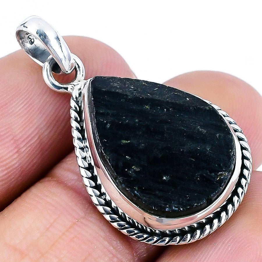 Natural Black Rutile Sterling Silver Daughters Day Wife Artisan Pendant Jewelry