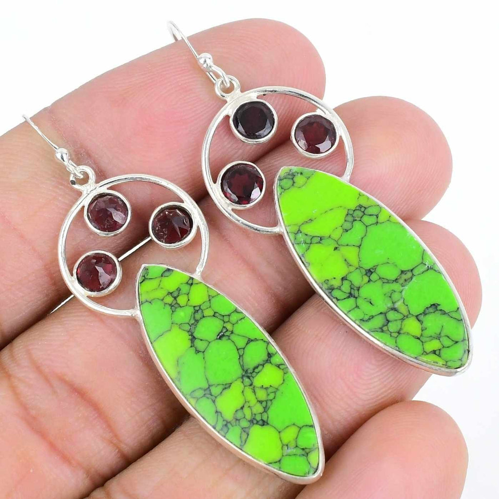 Natural Green Copper Turquoise Dangling Birthday Earrings Solid Sterling Silver