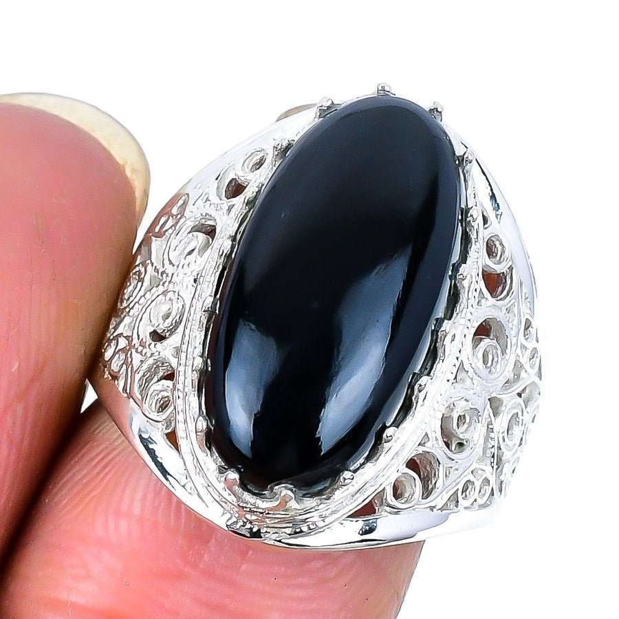 Black Onyx Stone Solid Silver Anniversary Sister Statement Ring Jewelry US 7.5