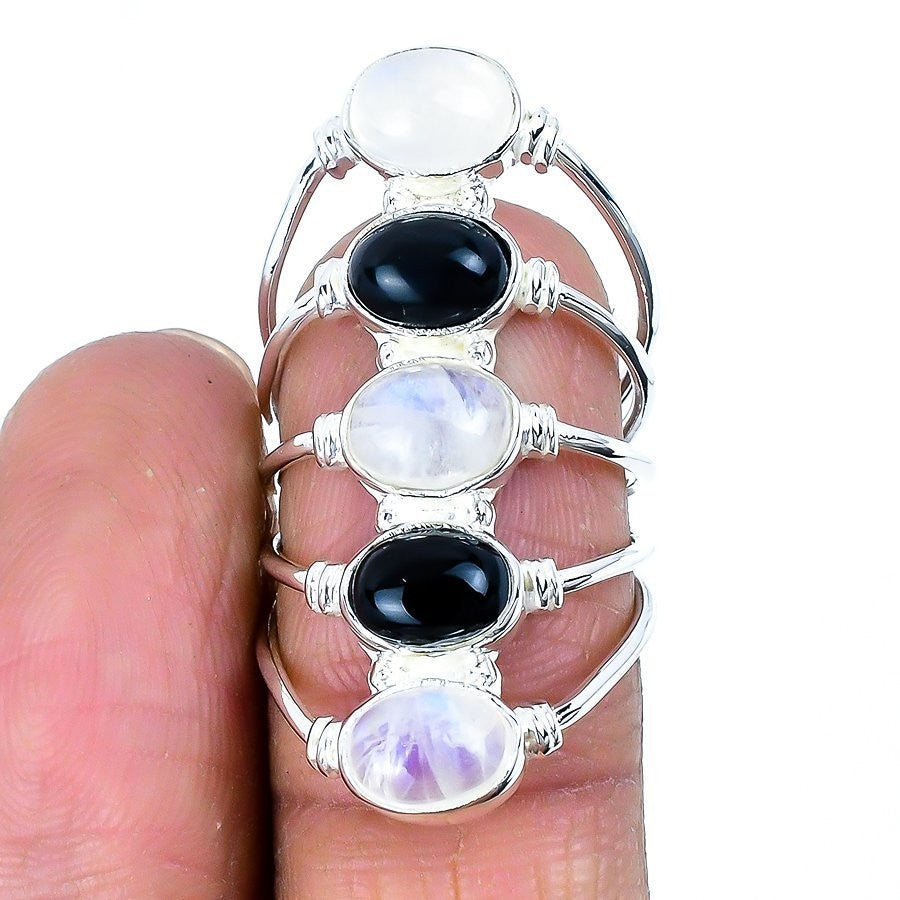 Rainbow Moonstone Stone Solid Sterling Silver Trendy Wife Cluster Ring Size 7.5