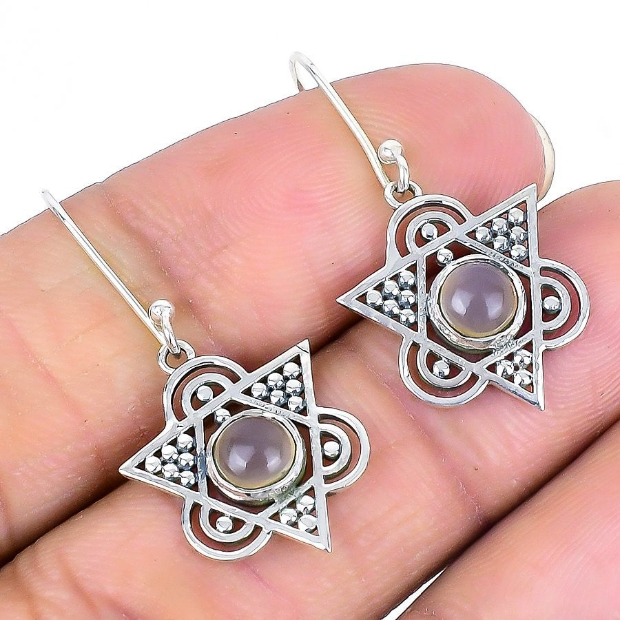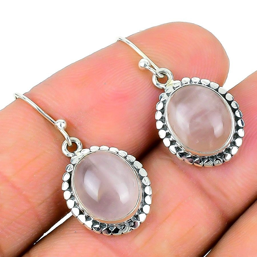 Rose Quartz Gemstone Dangle Drop Unique Daughters Day Earrings Sterling Silver