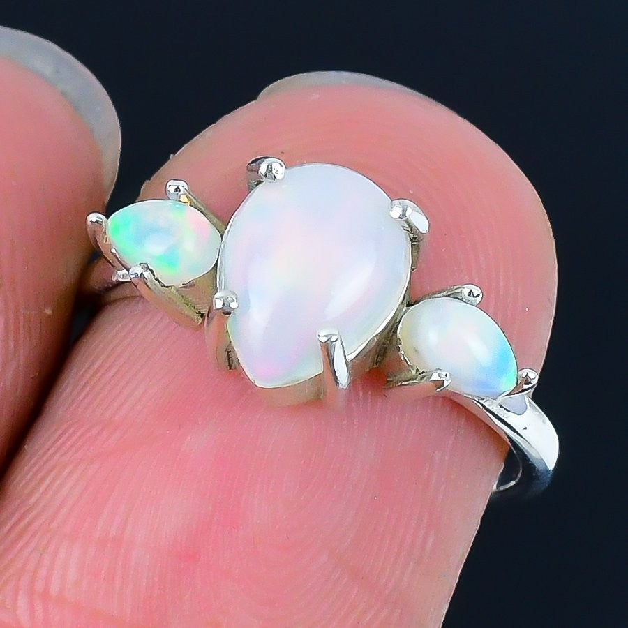 Ethiopian Opal Stone Solid Sterling Silver Birthday Ethnic Statement Ring US 10