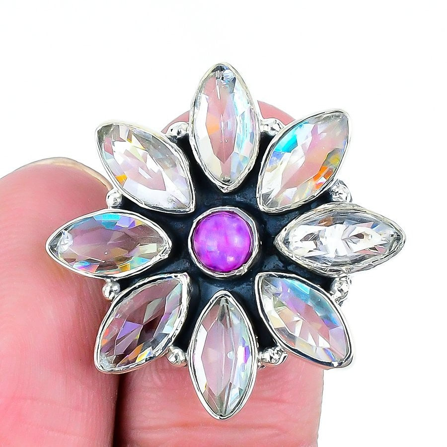 Pink Moonstone Gemstone Solid Silver Daughters Day Cluster Crown Chakra New Ring